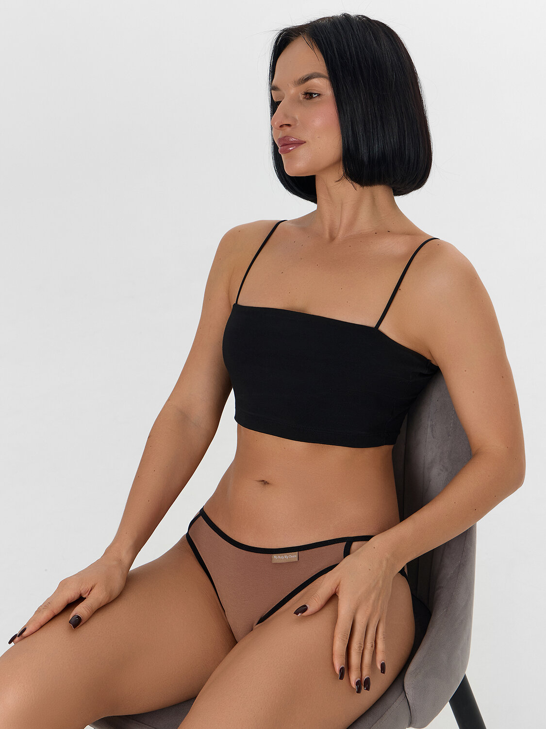 Основой для этих трусиков послужил мягкий трикотаж на основе кулирной глади. Его состав с преобладанием натурального хлопка и добавкой эластана дарит коже приятные ощущения. Материал отличается высокой воздухопроницаемостью и гипоаллергенными свойствами, обеспечивая комфорт при длительной носке. Небольшой процент эластичных волокон гарантирует, что слипы сохранят свою первоначальную форму, мягко облегая тело без стеснения движений.