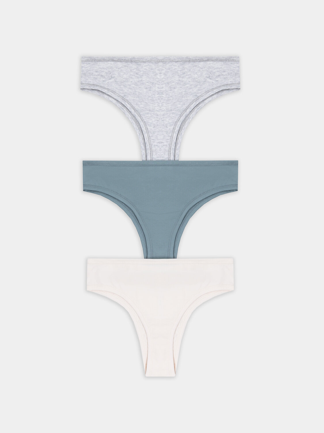 Набор из трёх трусиков-бразилиана — это идеальное сочетание комфорта и элегантности! Модель со средней посадкой обеспечивает максимальное удобство, создавая одновременно естественный и привлекательный силуэт. Благодаря нежной хлопковой кулирке трусики остаются мягкими, приятными к телу и позволяют коже дышать, что делает их идеальными для повседневной носки.