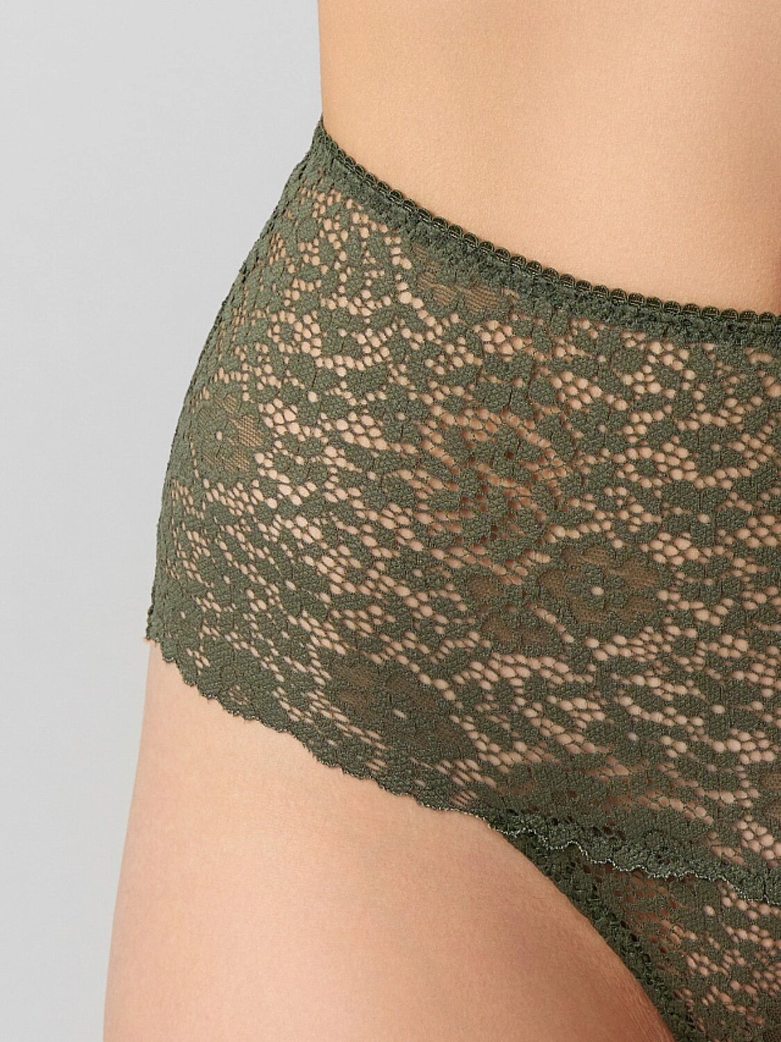 Изысканные женские трусики-бразилиана с высокой посадкой — идеальный выбор для тех, кто ценит элегантность и комфорт. Выполненные из эластичного кружева, они прекрасно облегают фигуру. Подкладка ластовицы из кулирного полотна обеспечивает дополнительное удобство, а верхний срез, обработанный эластичной тесьмой, гарантирует надежную посадку. Дополните комплект подходящим верхом из той же коллекции, чтобы создать эффектный и гармоничный образ. Превосходный вариант для подарка себе или близким. хаки