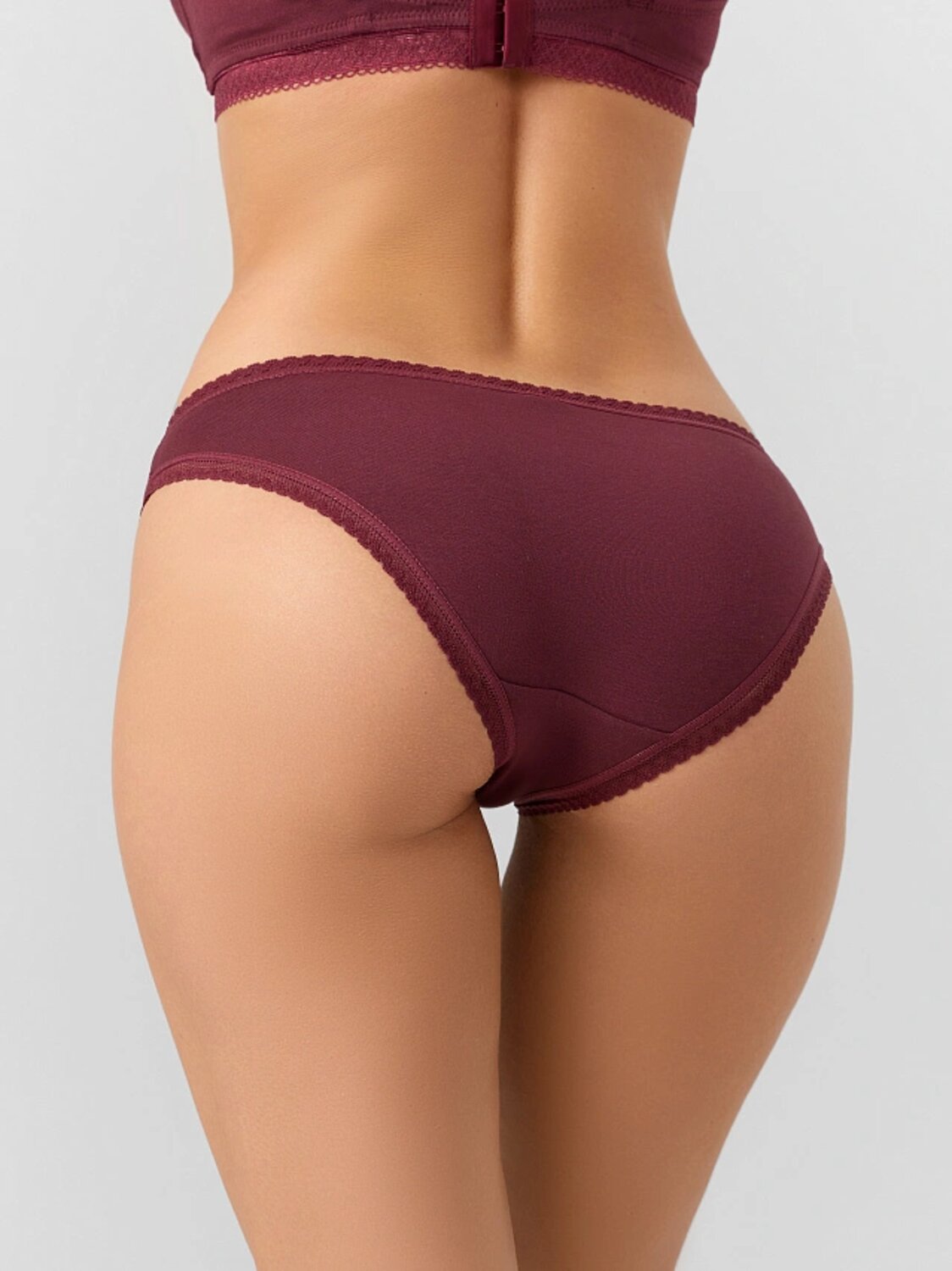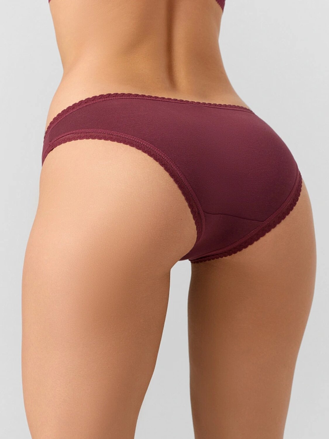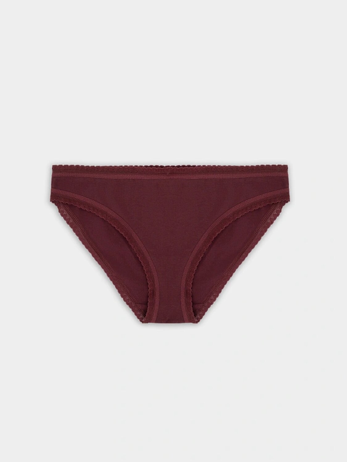 Передняя деталь цельная. Нижние и верхний срезы обработаны эластичной тесьмой 14 мм (декоративная Dt12-14, девсел 1294К). Нижняя ластовица отлетная по переднему срезу, выполнена из основного полотна. бургундское вино