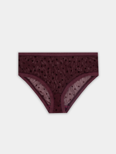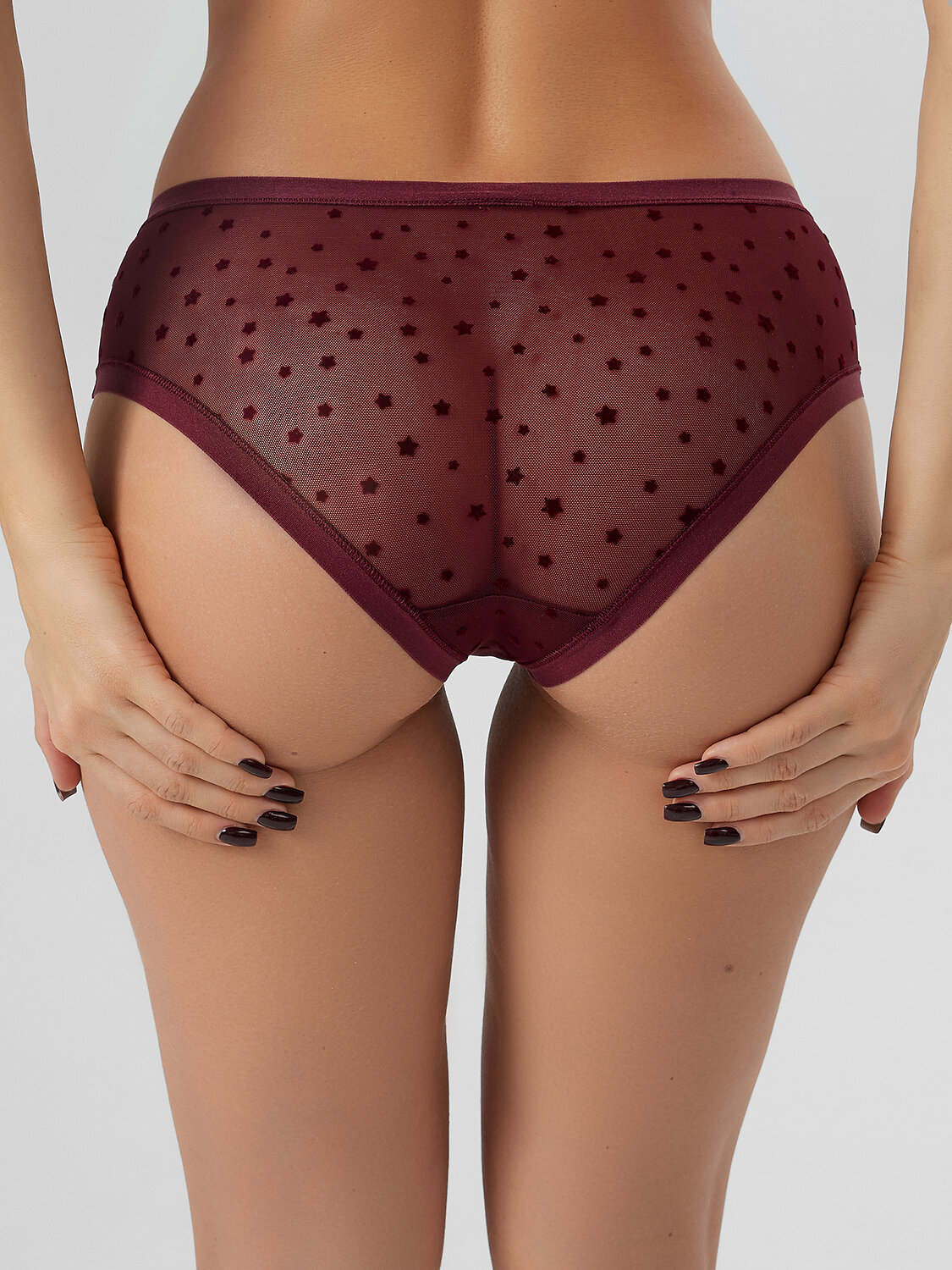 Трусы женские, силуэт - слипы, выполнены из триктажного полотна сетка с флоком. Верхние и нижние срезы обработы эл тесьмой 15мм (жилкой WT4-15, Девсел арт 13195W) на плоскошовной машине с верхним застилом. Задняя и передняя деталь цельнокроеные. Подкладка ластовицы отлетная по переду из кулирного полотна.