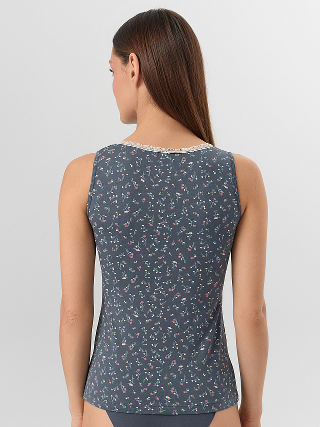 Майка прилегающего силуэта из хлопка. Горловина обработана узким эластичным кружевом. Длина классическая. Рекомендуем!