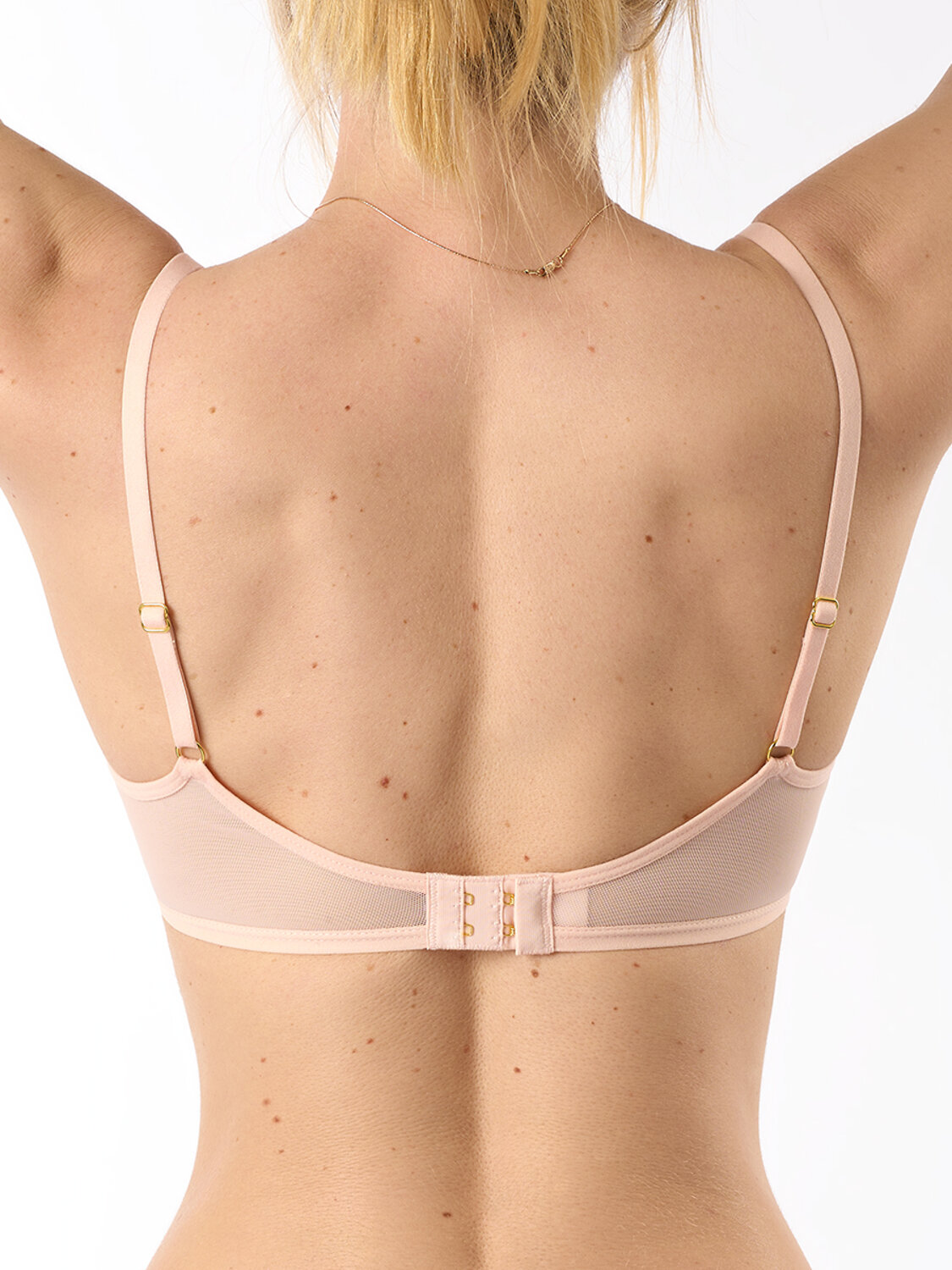 Бюстгальтер из сетки на стане с мягкими чашками на косточках. С изящной цветочной вышивкой и контрастной отделкой по краям. Придает груди эффектную округлую форму. Удобный стан и регулируемые бретели обеспечивают превосходное облегание и надежную поддержку. Застежка на два крючка создает дополнительный комфорт. Cipria (Розовый)