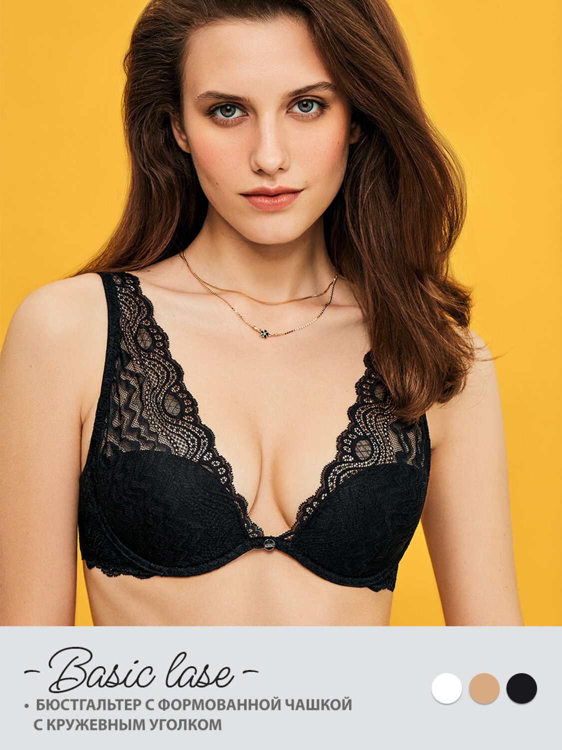 Кружевной бюстгальтер с формованными чашками на косточках, уплотненными в нижней части. С изящной кружевной полосой, которая плавно переходит с чашки на бретель. Позволяет создать оптимальный объем, приподнять грудь и подчеркнуть формы. Удобный стан и регулируемые бретели обеспечивают превосходное облегание и надежную поддержку. Застежка на два крючка создает дополнительный комфорт. Nero (Черный)