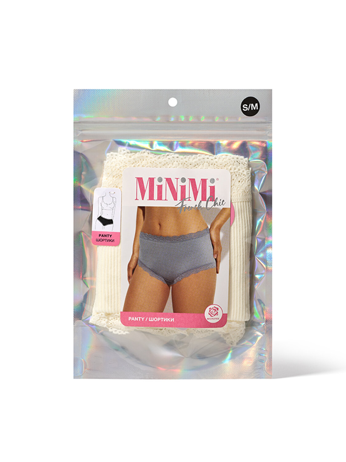 Комфортные трусы–шорты в рубчик со средней линией талии. Пояс и вырезы по линии бедра обработаны ажурным кружевом с изящным цветочным рисунком.