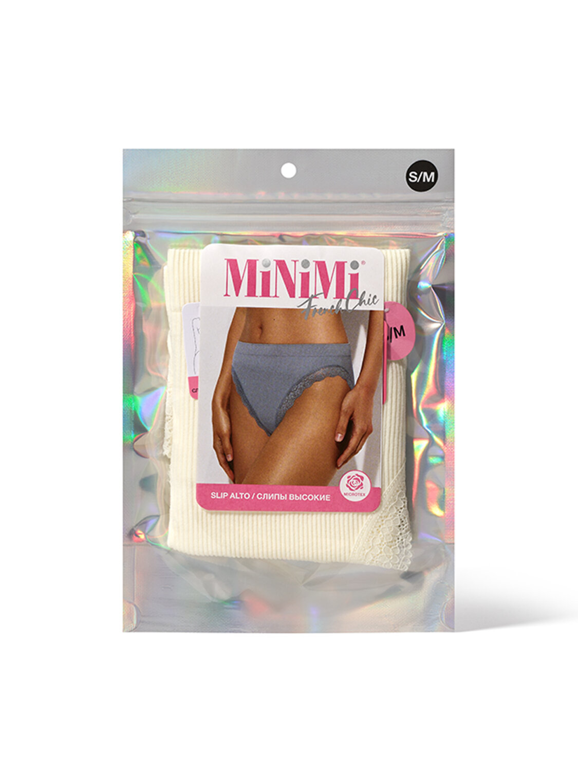 Комфортные трусы-слипы в рубчик со средней линией талии, узкой боковиной и высоким вырезом по бедру. Вырезы по линии бедра обработаны ажурным кружевом с изящным цветочным рисунком.