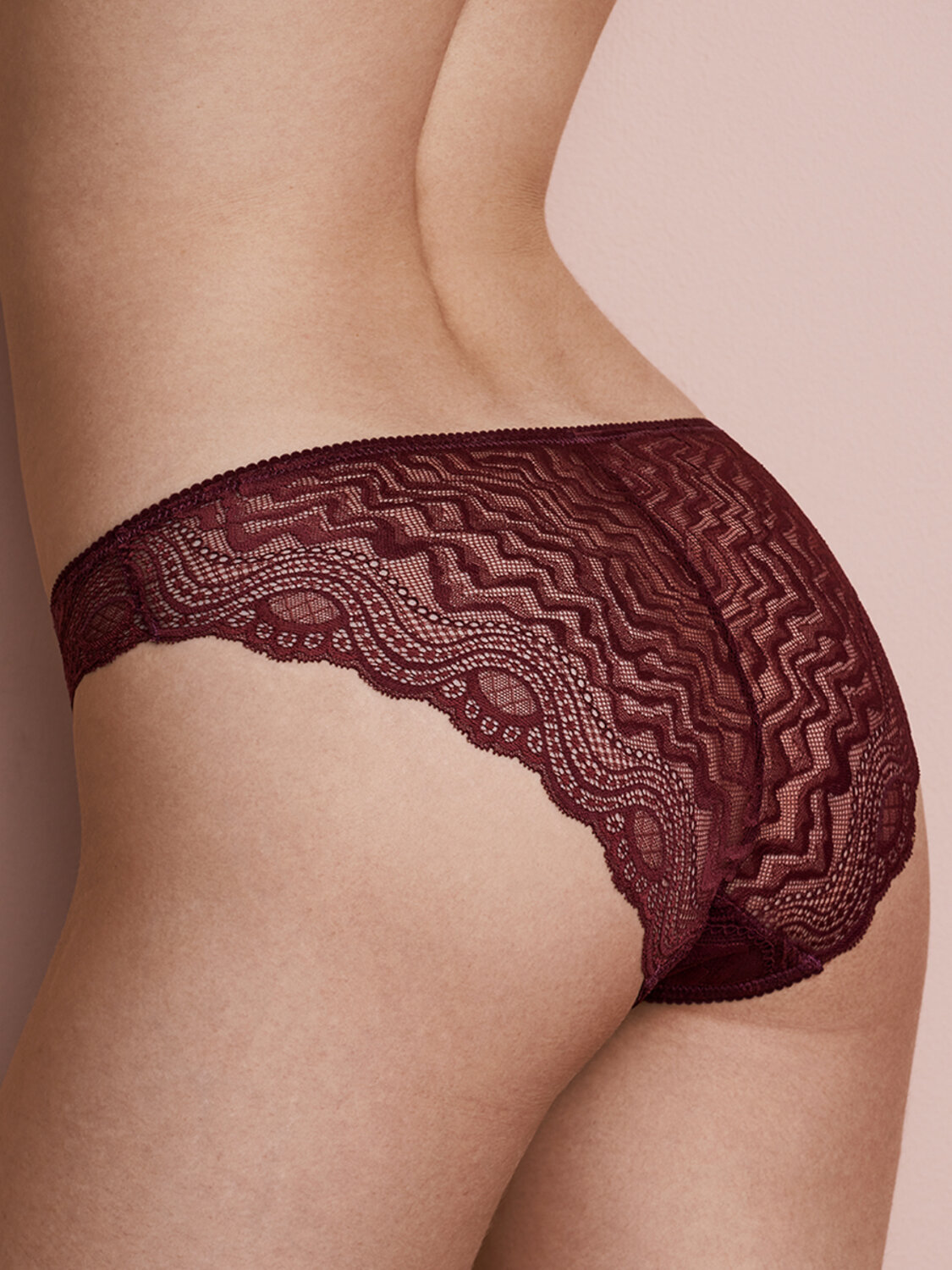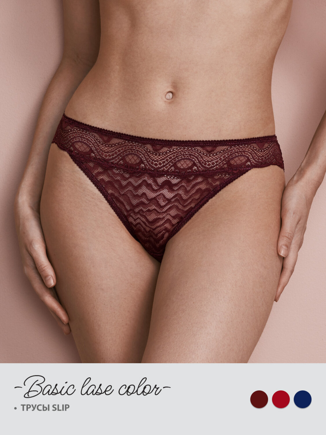 Кружевные трусы «слипы» со средней линией талии и узкой боковиной. Превосходно облегают и комфортно ощущаются на теле. Практически полностью закрывают ягодицы. Ластовица выполнена из мягкого хлопка. Vino (Бордовый)
