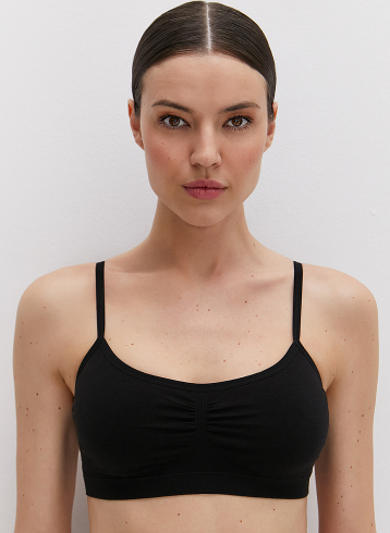Бесшовный топ на тонких регулируемых бретелях. Изготовлен из высококачественного хлопка, который отлично пропускает воздух, хорошо впитывает влагу, приятно ощущается на теле и подходит для чувствительной и нежной кожи.