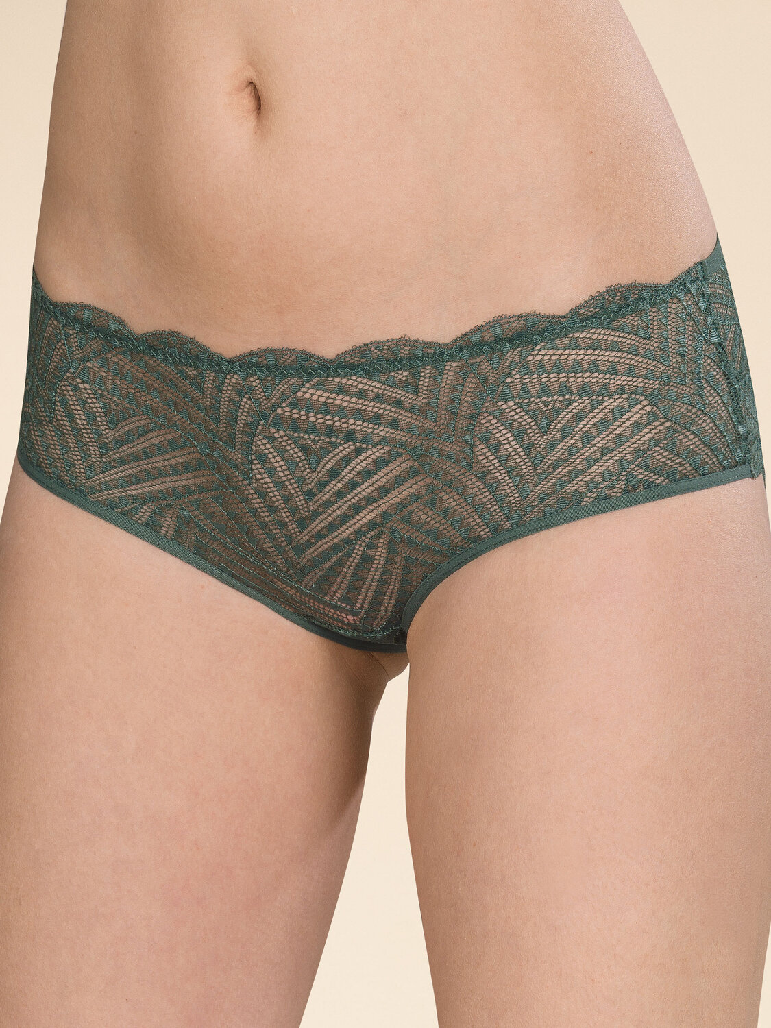 Женские кружевные трусы-шорты со средней посадкой для влюбленных в красивый образ жизни. Эластичная и мягкая ткань позволяет избежать натираний и неудобств, кожа дышит. Кружево с фестонным краем подчеркивает изящные линии тела и придает модели романтичные нотки. Нежный кружевной узор придает женственности и изысканности. Вы можете создавать разные образы по настроению - от повседневных и классических, до соблазнительных.