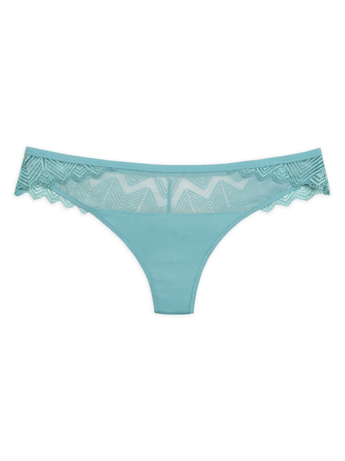 Женские трусики стринги. Низкая посадка. Обработка эластиком по талии и по ноге. Спереди сочетание сетки и основной ткани, на спинке и полочке кружево. Продольный шов по спинке.