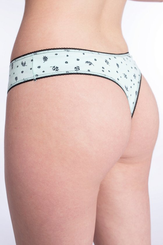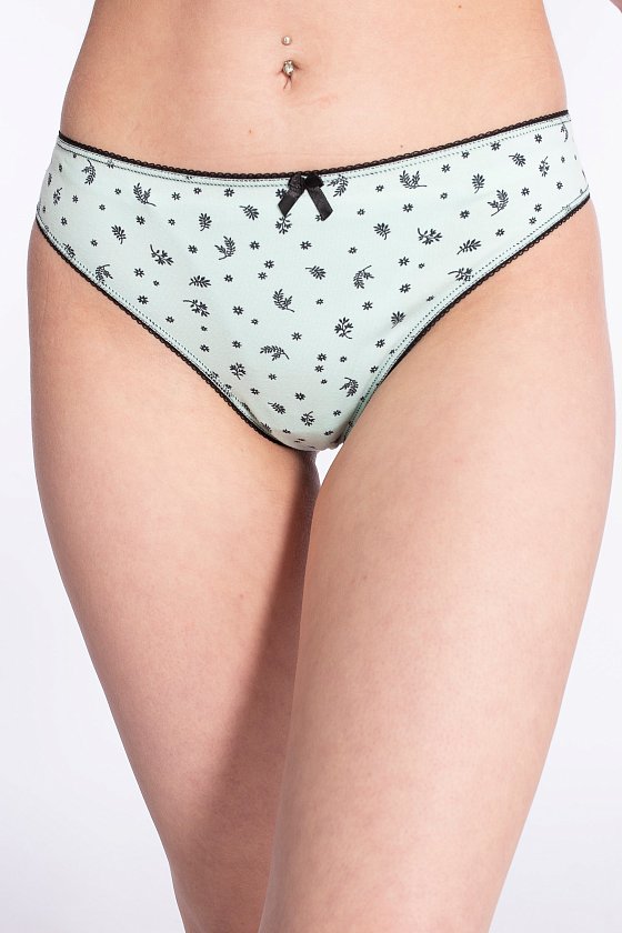 Стринги из кулирки с лайкрой с набивным рисунком. По верху и ножкам декоративная резинка, спереди декоративный бантик.