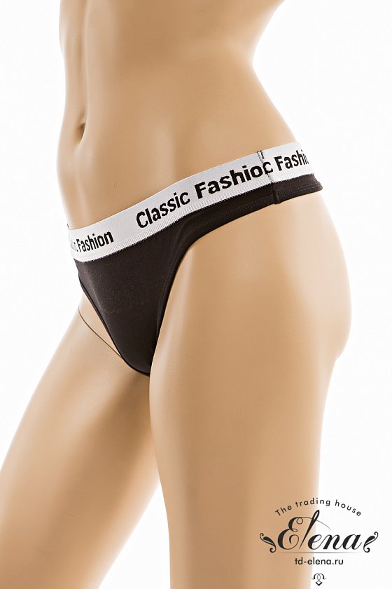 Трусы стринги-танго из однотонной кулирки с лайкрой. Пояс с декоративной резинкой.