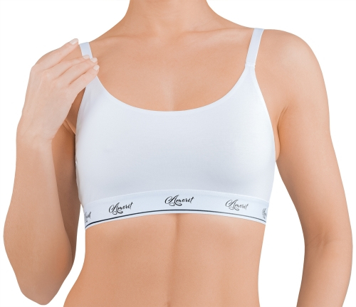 95% хлопок/ 5% спандексТоп в повседневном стиле/ выполнен из деликатного хлопкового полотна. Передняя деталь из двойного полотна для дополнительной поддержки груди/ швы скрыты/ что обеспечивает максимальный комфорт. Спинка из одинарного полотна. Бретели можно носить как классическим способом/ так и перестегнуть крест-накрест. Декор – брендированная резинка в цвет изделия. Упаковка - картонная коробочка. 1 шт. в упаковке