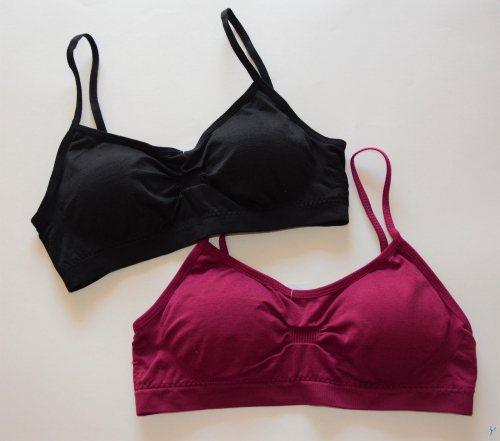 Топ-бюстгальтер на бретелях из мягкого и дышашего материала. . Чашки съемные.