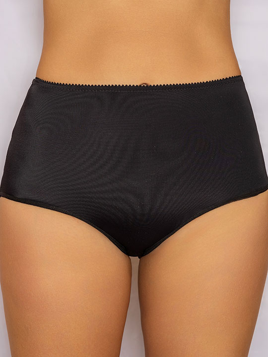 Трусы-слип комфорт с завышенной линией талии. Передняя деталь выполнена из микрофибры, задняя деталь из микрофибры и эластичного кружева. Черный