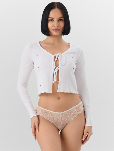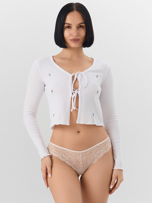 Модель со средней посадкой и эластичным поясом обеспечивает идеальную посадку, а ажурные вставки добавляют образу пикантности. Удобная ластовица с хлопковой подкладкой гарантирует комфорт в течение всего дня.