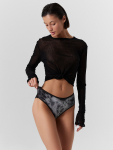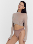 Передняя деталь выполнена из мягкого и дышащего трикотажа. Задняя часть состоит из центральной вставки из трикотажа и боковых кружевных деталей. Кружево добавляет модели лёгкости и женственности, но не влияет на комфорт и посадку.