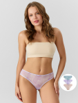 Бежевые классические трусы со средней посадкой — модель, в которой привычный комфорт дополнен изящными деталями. У них стандартная посадка, широкая передняя часть и полностью закрытые ягодицы — всё, что нужно для удобства в повседневной носке.