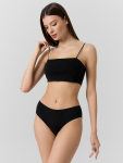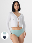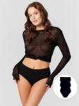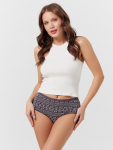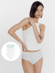 Трусики выполнены из мягкой и дышащей кулирной глади на основе хлопка с добавлением эластана. Натуральный материал обеспечивает гипоаллергенность, отличную воздухопроницаемость и нежность к коже, а эластичность эластана гарантирует идеальное облегание и сохранение формы.