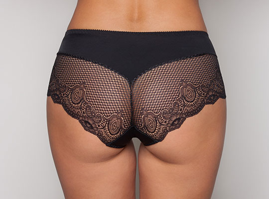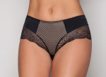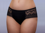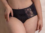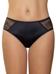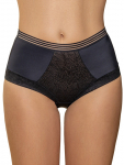 Трусы-слип комфорт с завышенной линией талии. Выполнены из микрофибры без блеска и эластичного ультратонкого эластичного кружева. Модель, где передняя деталь, моделирующая зону живота, продублирована хлопковым полотном. Черный