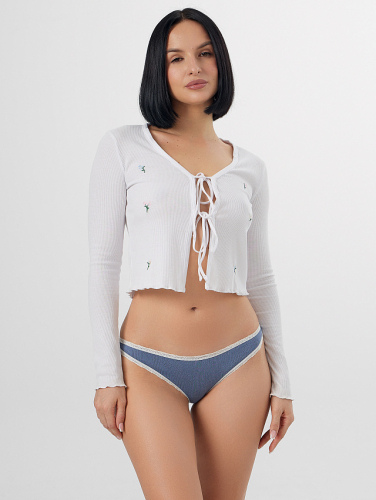 Основой для этих трусиков послужил мягкий трикотаж на основе кулирной глади. Его состав с преобладанием натурального хлопка и добавкой эластана дарит коже приятные ощущения. Материал отличается высокой воздухопроницаемостью и гипоаллергенными свойствами, обеспечивая комфорт при длительной носке. Небольшой процент эластичных волокон гарантирует, что слипы сохранят свою первоначальную форму, мягко облегая тело без стеснения движений.