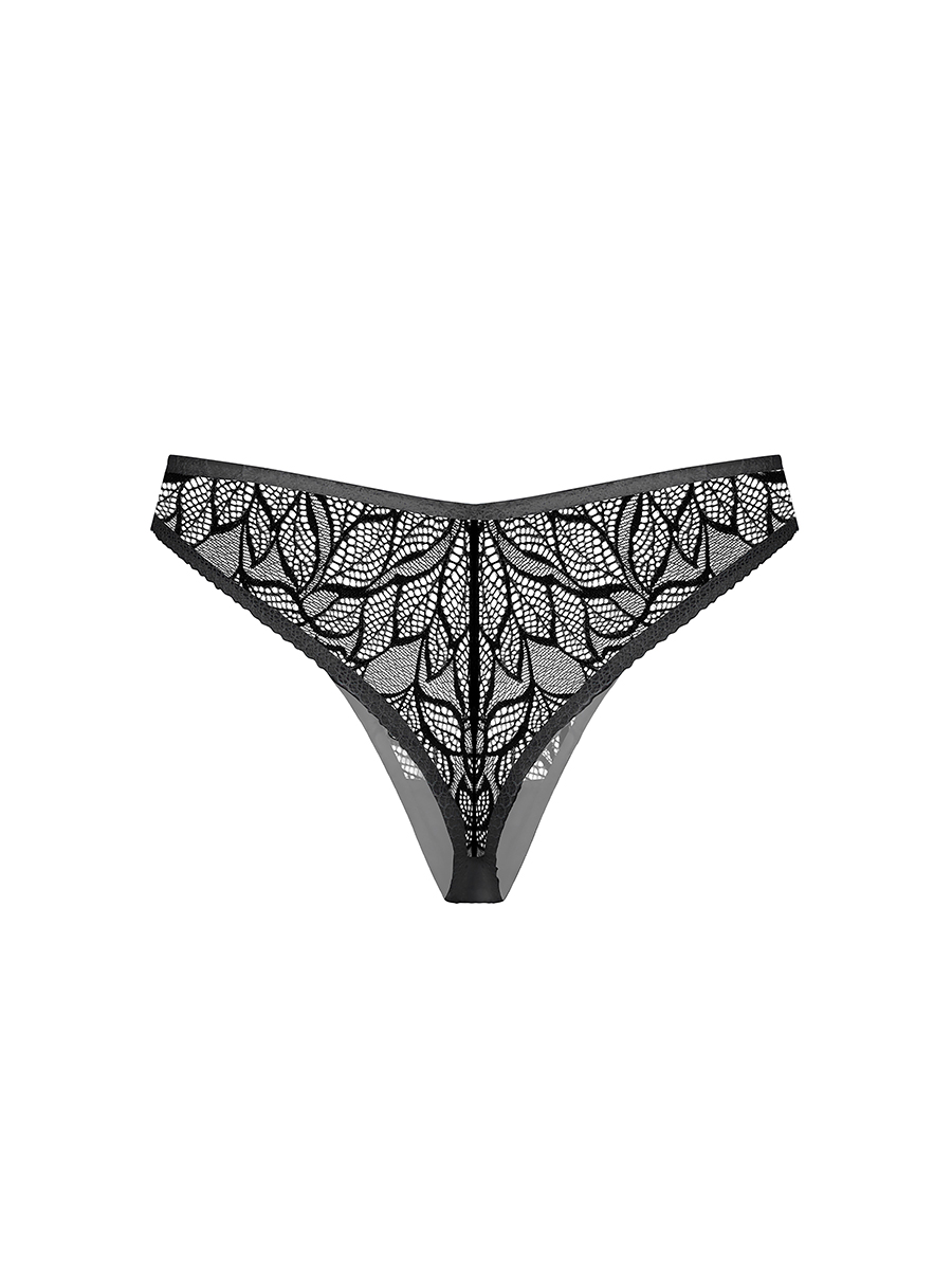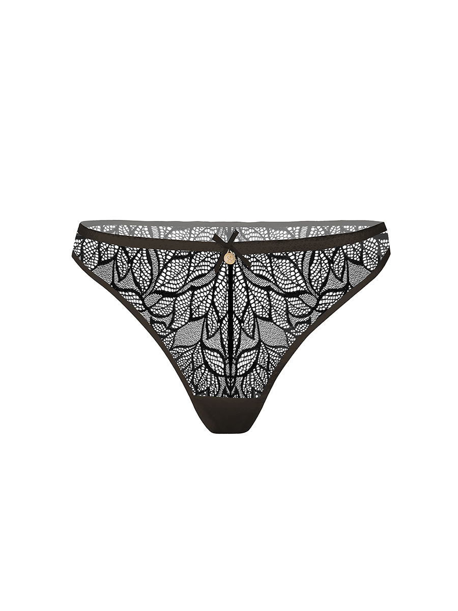 Кружевные трусики модели Brazilian со средней посадкой. Нежные резинки по талии и срезу ножек спереди. Кружевное полотно по срезу ножек сзади. Ластовица из хлопка. Декоративная металлическая подвеска с заглавной буквой бренда