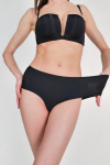 Стильные кружевные трусики слип с завышенной линией талии – отличный выбор как на каждый день, так и для особого случая.Лаконичная, стильная сетка в задней части изделия притягивает взгляд к роскошным формам обладательницы белья. Вставки из кружева по бокам трусов придают пикантности образу. Отличительная особенность изделия - уникальный, трендовый дизайн задней части в виде пояска с карабином и треугольника из перекрещенных лент, в котором очень заманчиво виднеется часть обнажённого тела. Удачно дополняет модель фирменный знак бренда. Классические женские трусы слипы прикрывают ягодицы на 2/3. Благодаря конструкции, практически полностью закрывающей ягодицы, и удобной посадке, слипы не ощущаются на теле. У изделия средняя посадка и боковина средней ширины. Трусики с плоскими швами - вы можете носить их под облегающими вещами.