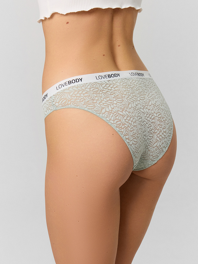 Трусы женские слипы из кружевного полотна с декоративной эл тесьмой по талии.