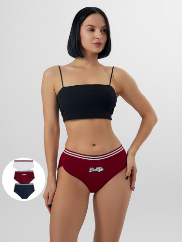 Трусы женские со средней посадкой силуэта «слип» из трикотажного кулирного полотна. Узкий бочок. Передняя и задняя детали цельные. Подкладка ластовицы из кулирного полотна отлетная по переднему краю.