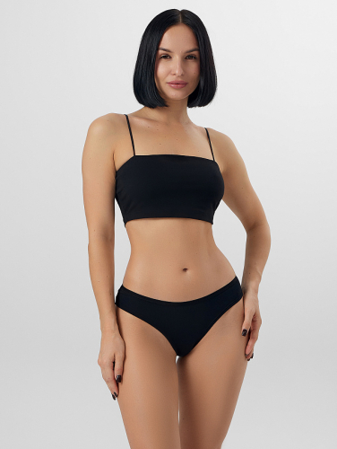 Трусы женские, силуэт - слипы, выполнены из трикотажного кулирного полотна+кружево. Передняя, задние верхние детали и подкладка ластовицы выполнены из кулирного полотна. Срезы по ножкам на детали переда обработаны на плоскошовной машине. Задние детали декорированы широким кружевом, по центру шов. Верхний срез трусов обработан эл. тесьмой 6мм (жилко й WT4, Девсел арт 13460W) на плоскошовной машине с верхним застилом.