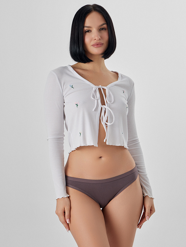 Трусы женские со средней посадкой силуэта «слип» из трикотажного кулирного полотна. Узкий бочок. Передняя и задняя детали цельные. Подкладка ластовицы из кулирного полотна отлетная по переднему краю.