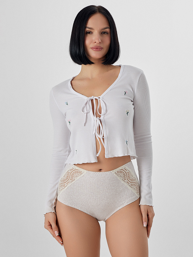 Женские трусы макси — воплощение элегантности и комфорта! Выполненные из высококачественного хлопка, они дарят мягкость, гипоаллергенность и полный комфорт при носке. Особенностью модели является изысканный декор: кружево, которое плавно переходит с передней детали на заднюю, создавая утонченный и гармоничный образ. Отсутствие боковых швов обеспечивает абсолютное удобство, а задняя деталь из рибаны гарантирует долговечность и комфортное прилегание. Высокая посадка, широкие боковые части и полностью закрытые ягодицы идеально адаптируются к фигуре, подчеркивая её формы и создавая уверенность в любой ситуации. Полупрозрачные кружевные вставки добавляют изделию женственности и изящества. Эти трусики прекрасно подходят дамам с пышными формами и становятся идеальным решением для повседневного гардероба. Эстетика и удобство в одном изделии!