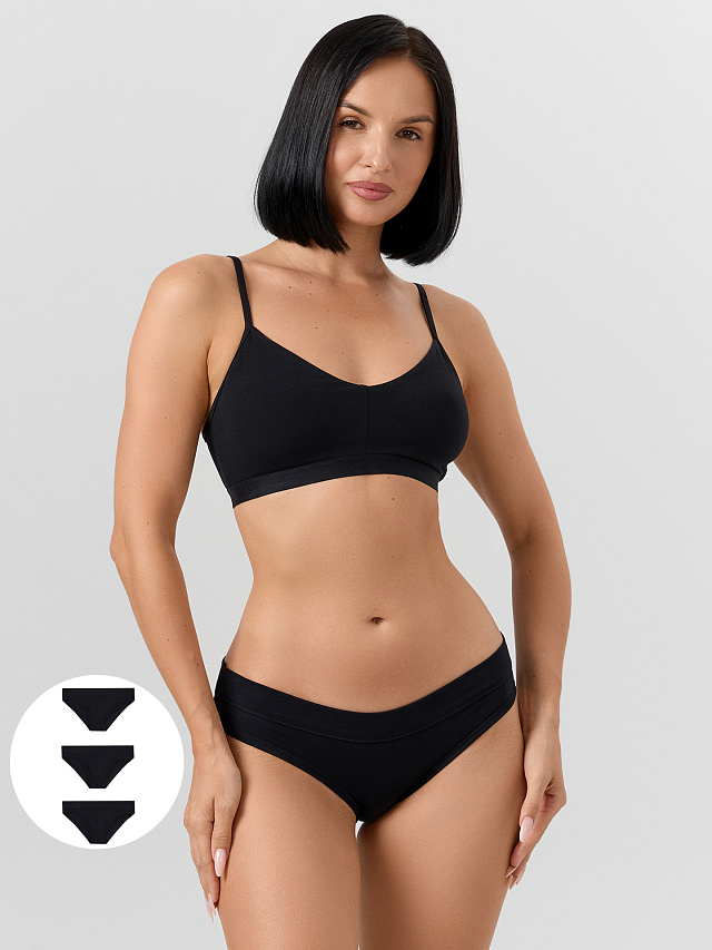 Набор женских трусиков слипов (3 шт.) разных цветов из высококачественного хлопка. Трусы женские слипы хлопковые или, как их еще называют, слип-бикини — это популярная модель женского белья. Невероятно удобные, благодаря своей невысокой посадке, они пользуются заслуженной любовью покупательниц. Изготовлены из натурального материала — дышащего, мягкого, гипоаллергенного. Помимо длительного и полного ощущения комфорта, материал отличается долговечностью. Продуманная анатомическая конструкция, плоские швы и деликатные резиночки делают эту модель подходящей для занятий спортом. Пригодятся и будущим мамам: низкая талия трусиков удобно помещается под растущим животиком и абсолютно не давит. Рекомендуем!