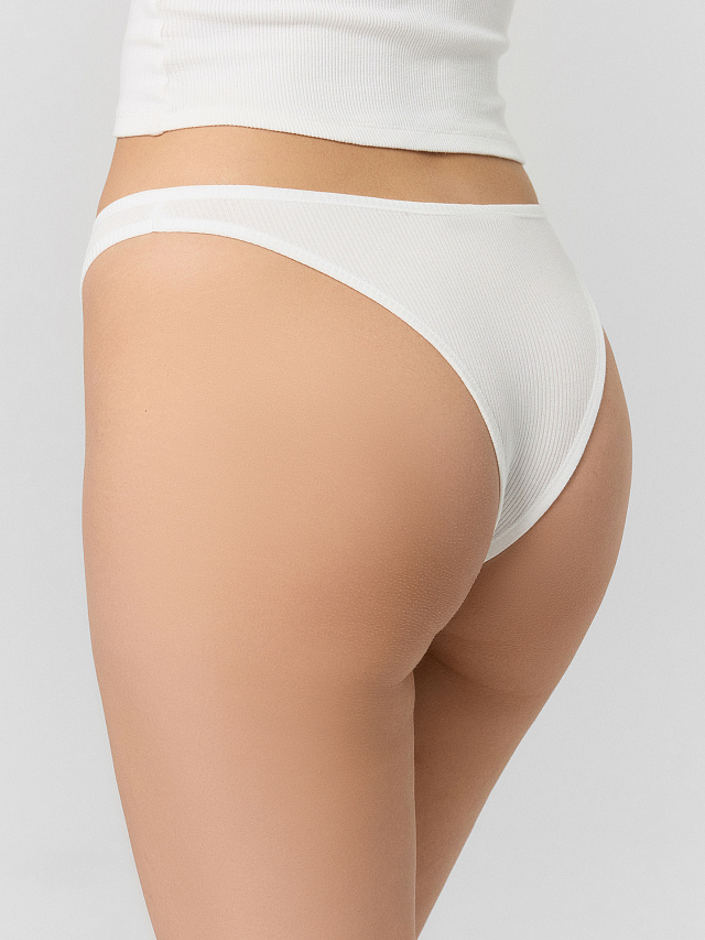 Стильный и лаконичные трусики бразилиана из нежного и гипоаллергенного хлопкового полотна. Линия талии высокая. Верхний и нижние срезы обработаны окантовкой из основного полотна. Особый шарм белью придает фактура в рубчик.