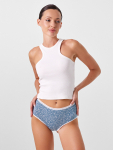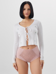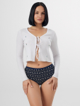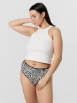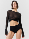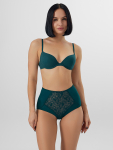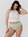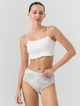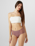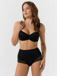 Трусы женские корректирующие, силуэт бразилиано с высокой линией талии и высокой линией ножек. Отрезные горизонтально на уровне линии ножек.Нижняя ластовица выполнена из кулирного полотна и отлетная по переднему краю. Верхние и нижние срезы не обработаны.