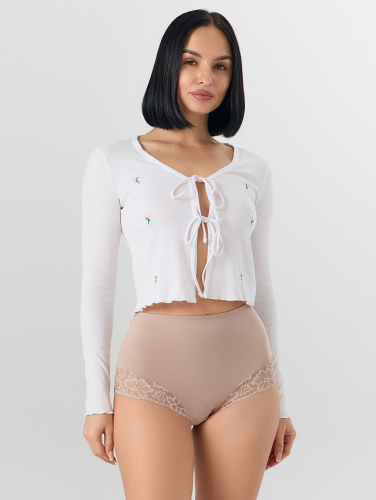 Трусы женские макси бежевые с кружевными деталями