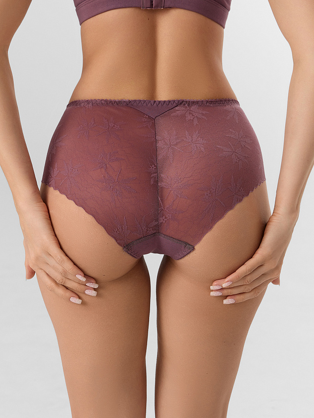 Фиолетовые кружевные трусы макси — это женственная и удобная модель, созданная для комфорта в течение всего дня. Они выполнены из мягкой, эластичной ткани и украшены ажурными кружевными вставками, что добавляет образу утончённости.