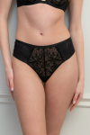 Стильные кружевные трусики слип с завышенной линией талии – отличный выбор как на каждый день, так и для особого случая.Лаконичная, стильная сетка в задней части изделия притягивает взгляд к роскошным формам обладательницы белья. Вставки из кружева по бокам трусов придают пикантности образу. Отличительная особенность изделия - уникальный, трендовый дизайн задней части в виде пояска с карабином и треугольника из перекрещенных лент, в котором очень заманчиво виднеется часть обнажённого тела. Удачно дополняет модель фирменный знак бренда. Классические женские трусы слипы прикрывают ягодицы на 2/3. Благодаря конструкции, практически полностью закрывающей ягодицы, и удобной посадке, слипы не ощущаются на теле. У изделия средняя посадка и боковина средней ширины. Трусики с плоскими швами - вы можете носить их под облегающими вещами.
