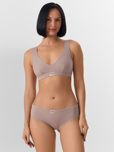 Трусы женские, средняя линия талии, силуэт - слипы. Передняя и задняя детали выполнены из рибаны. Верхний срез трусов обработан бейкой поперечной из рибаны, внутри жилка 6мм. Нижние срезы обработаны бейками поперечными из рибаны. Подкладка ластовицы из хлопка, отлетная по верхнему срезу.