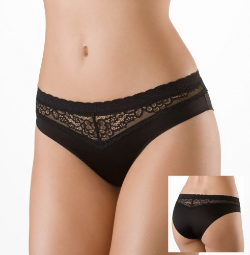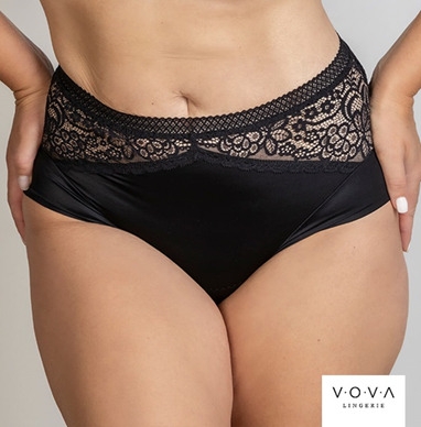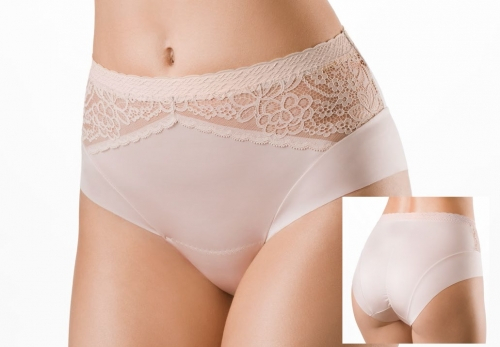 Трусики с высокой линией талии. Ножки обработаны манжетой из полотна "clin-cut", что позволяет не обрабатывать края. По центру спинки настрочена тонкая эластичная ленточка для пуш-ап эффекта. серебр.пион;черный