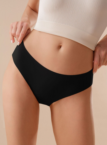 ✔ Пояс: Узкая чёрная резинка по верхнему краю — акцентирует линию талии, обеспечивает надёжную фиксацию и не оставляет следов на коже.