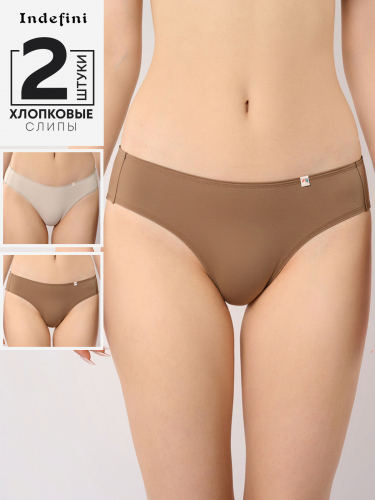 Комплект женских трусов-слипов от Indefini — это идеальное сочетание простоты, комфорта и практичности. Представлен в двух нейтральных оттенках: бежевом и светло-кремовом, что делает их универсальными для повседневного использования под любую одежду.