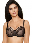 Черный 70J, 80H, 80I, 80J, 85B, 85H, 85I, 85J, 90B, 90D, 90E, 90F, 90G, 90I, 95B, 95C, 95D, 95F, 95H, 100F, 100G Бюстгальтер Halley №02 выполнен на косточках, чашки шитые, нижняя часть чашек на тонком поролоне, внутренняя сторона проложена хлопком, внешняя сторона и верхняя часть чашки из сетки черного цвета. Бретельки бюста не отстёгиваются, регулируются по длине, в зоне декольте декоративные бретели, регулируются по длине, соединяются с металлическим декоративным элементом с кристаллами. Все резинки и окантовка косточек чашек с серебряным люрексом. На спине застёжка на удлинитель, количество крючков в ряду застёжки увеличивается пропорционально размеру бюстгальтера. Бюстгальтер идеально сочетается с трусиками Halley. полиамид 88%, хлопок 8%, эластан 4%
