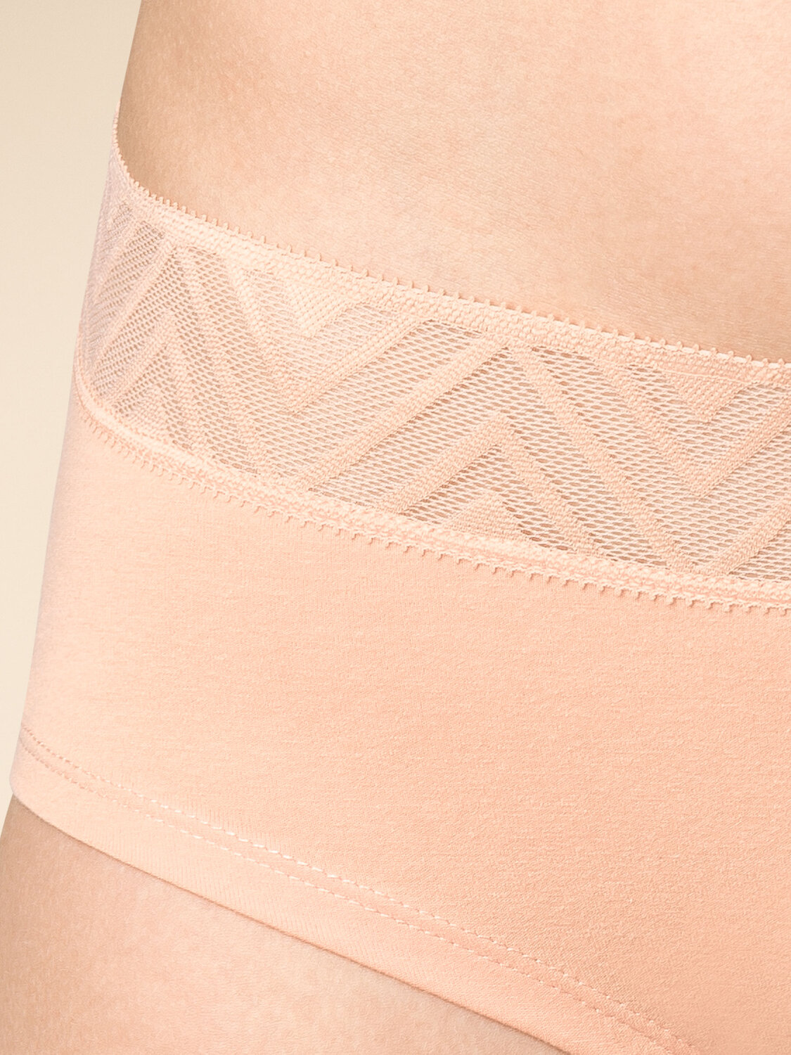 Женские трусы-шорты с низкой посадкой. Приятная на ощупь ткань с высоким содержанием хлопка и небольшим содержанием эластана – трусы сохраняют форму и не выцветают даже после частых стирок. Широкая обработка по линии талии мягким кружевным эластиком – не вызывает дискомфорта и не передавливает тело. Нежное геометричное кружево актуально в этом сезоне. Модель подчеркивает изящество фигуры и создаёт комфорт. Идеально подходят для повседневной носки, для сна и для романтических встреч.
