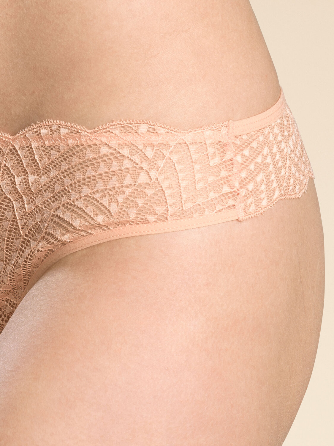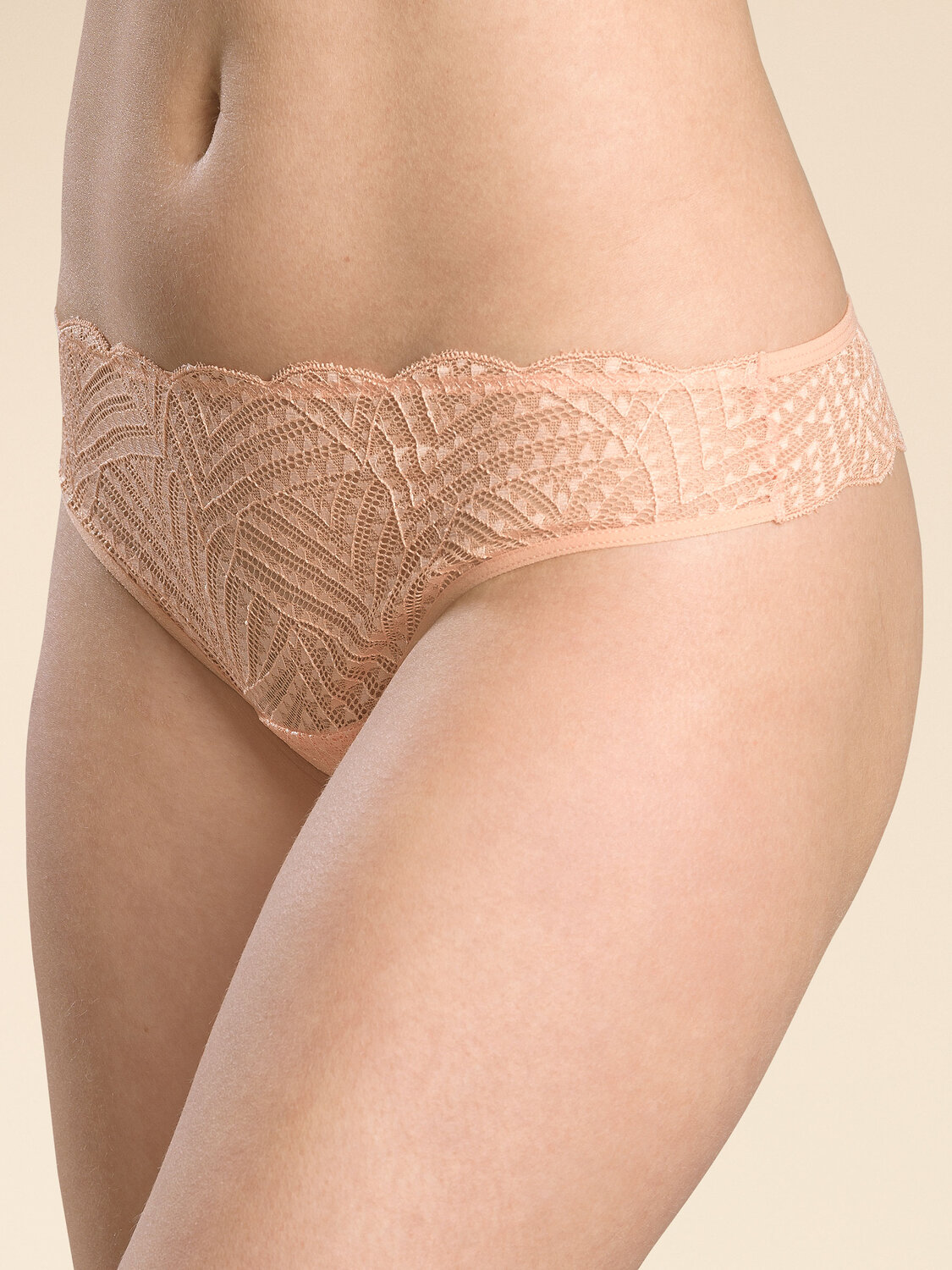 Женские кружевные трусы-стринги с низкой посадкой для влюбленных в красивый образ жизни. Эластичная и мягкая ткань позволяет избежать натираний и неудобств, кожа дышит. Кружево с фестонным краем подчеркивает изящные линии тела и придает модели романтичные нотки. Нежный кружевной узор придает женственности и изысканности. Вы можете создавать разные образы по настроению - от повседневных и классических, до соблазнительных.