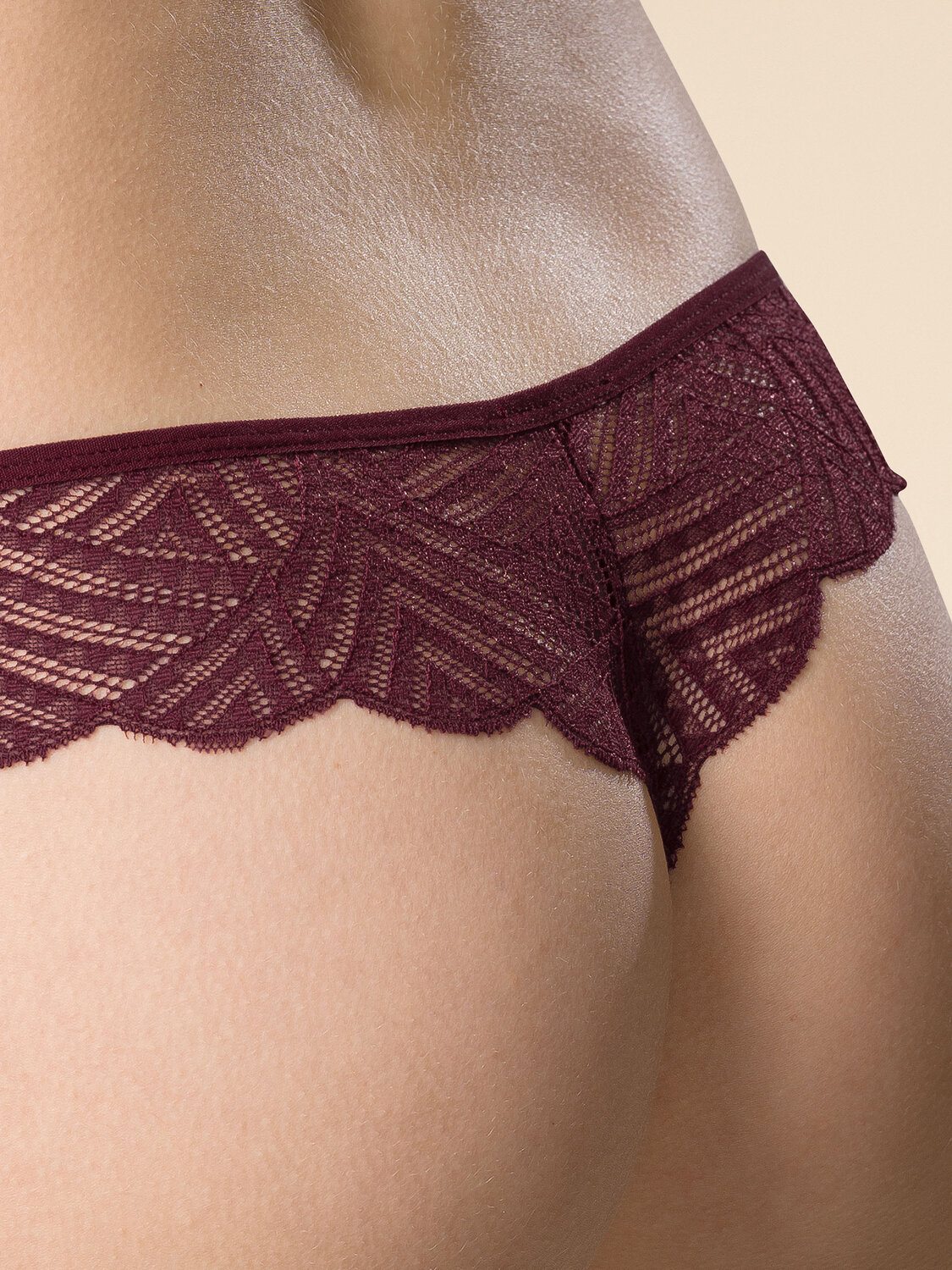 Женские кружевные трусы-стринги с низкой посадкой для влюбленных в красивый образ жизни. Эластичная и мягкая ткань позволяет избежать натираний и неудобств, кожа дышит. Кружево с фестонным краем подчеркивает изящные линии тела и придает модели романтичные нотки. Нежный кружевной узор придает женственности и изысканности. Вы можете создавать разные образы по настроению - от повседневных и классических, до соблазнительных.
