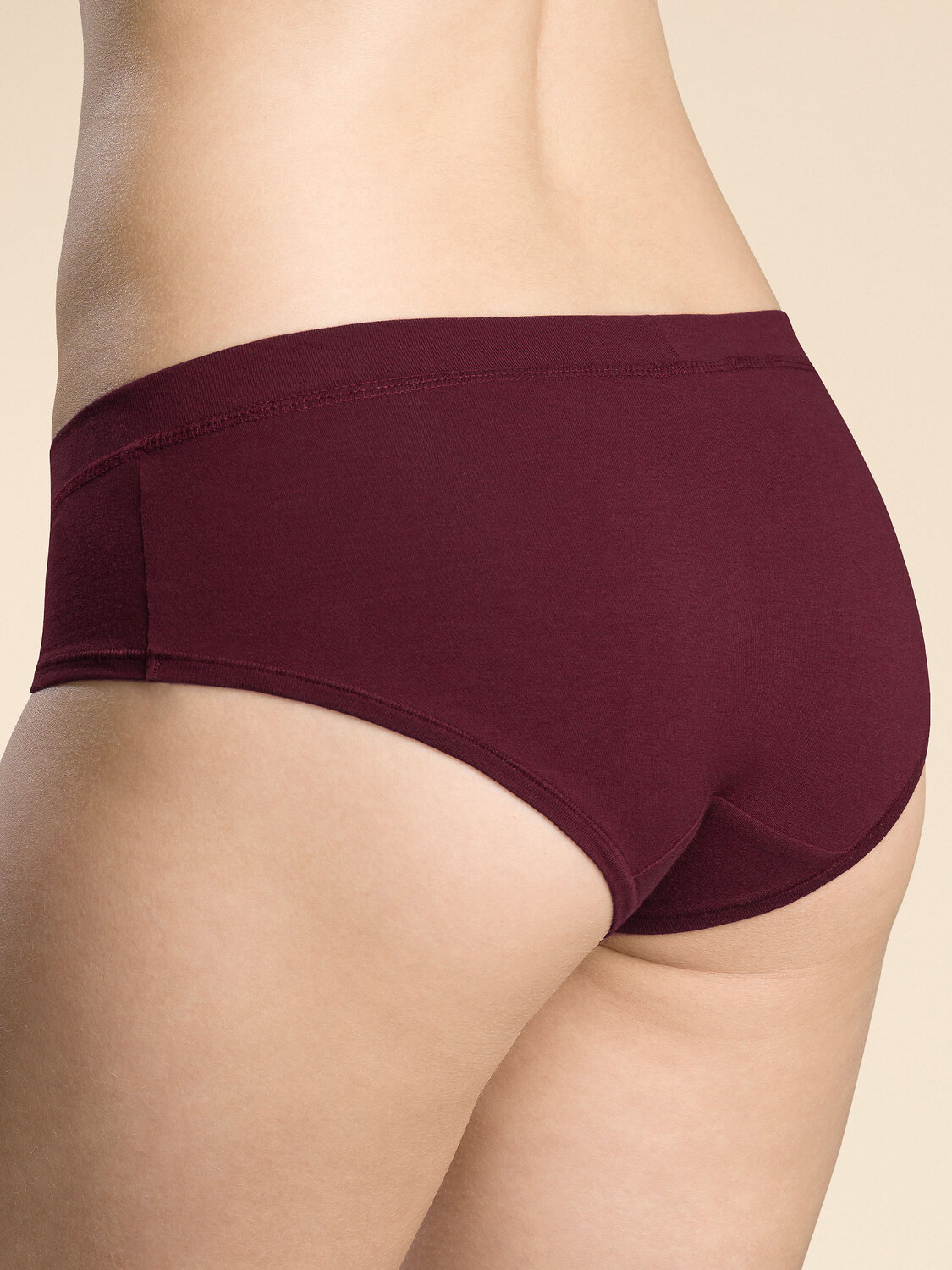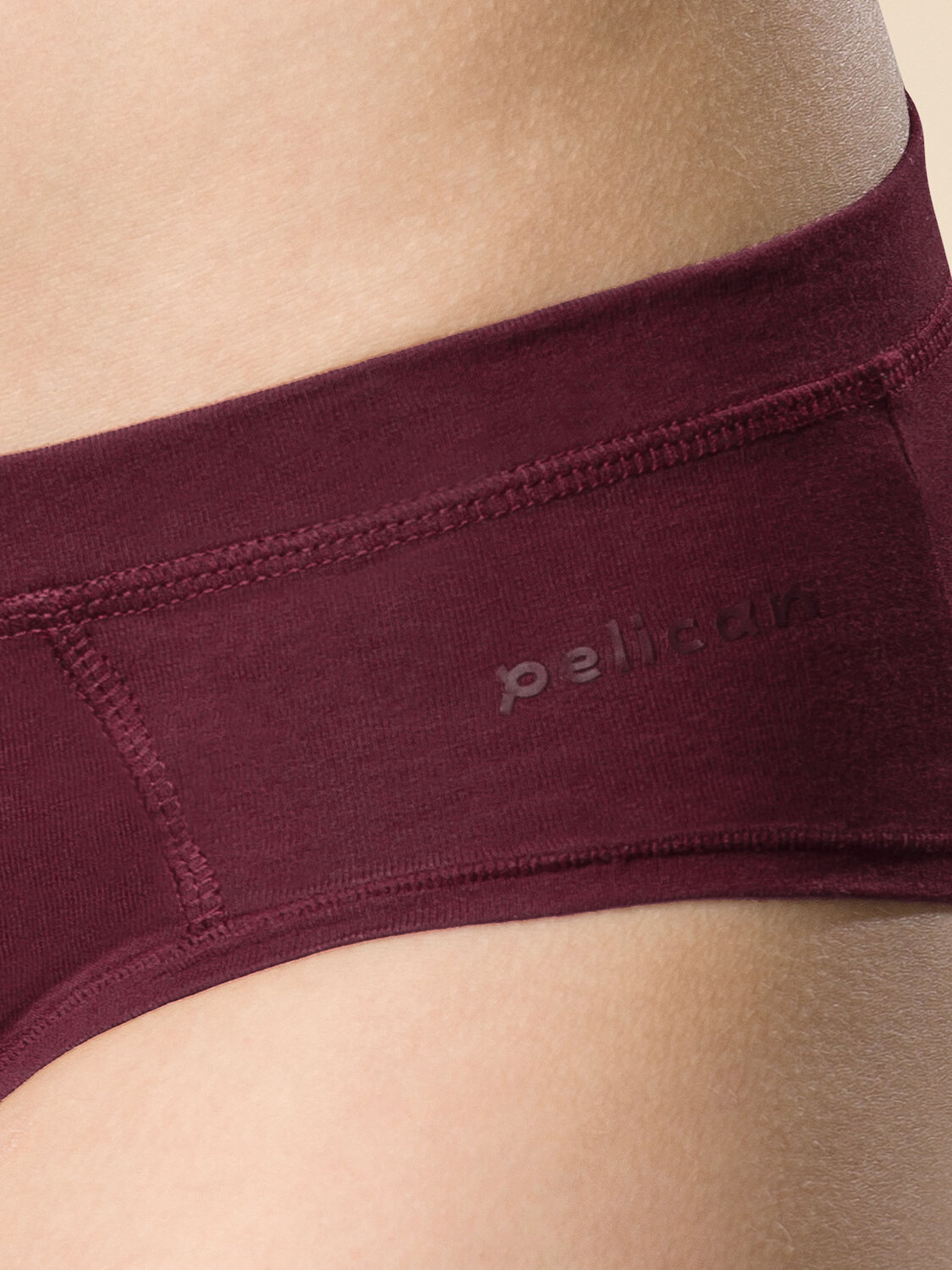 Женские трусы-шорты со средней посадкой. Приятная на ощупь ткань с высоким содержанием хлопка и небольшим содержанием эластана – изделие хорошо садится по фигуре и не сковывает движений. Мягкая широкая обработка по линии талии без эластика внутри – не передавливает тело и не натирает кожу. Плоские швы с декоративной отстрочкой добавляют модели маскулинности – тренд сезона на унисекс. Объемный лаконичный декор Pelican – тактильно-приятная изюминка. Бордовый
