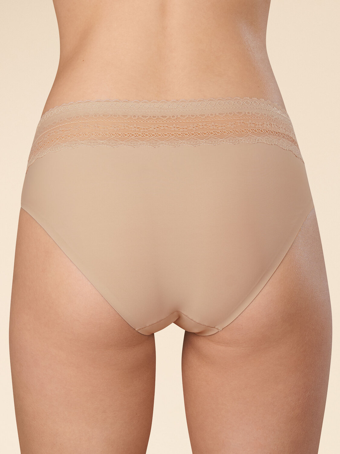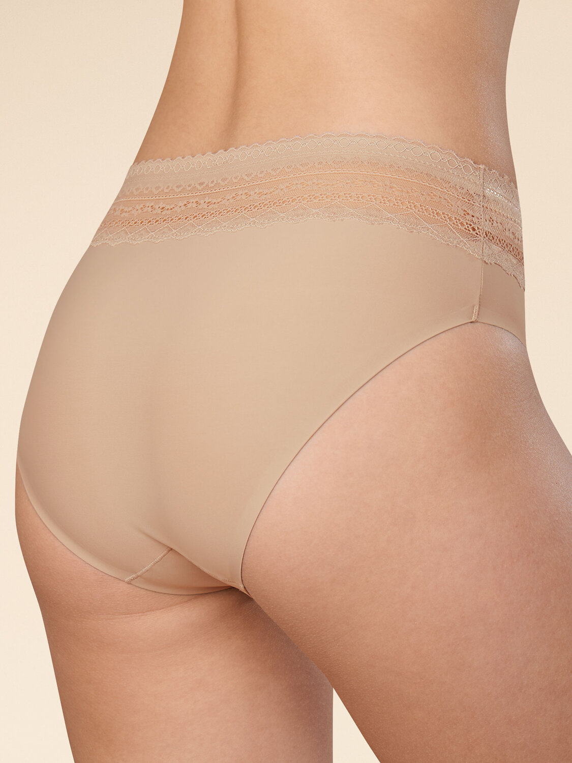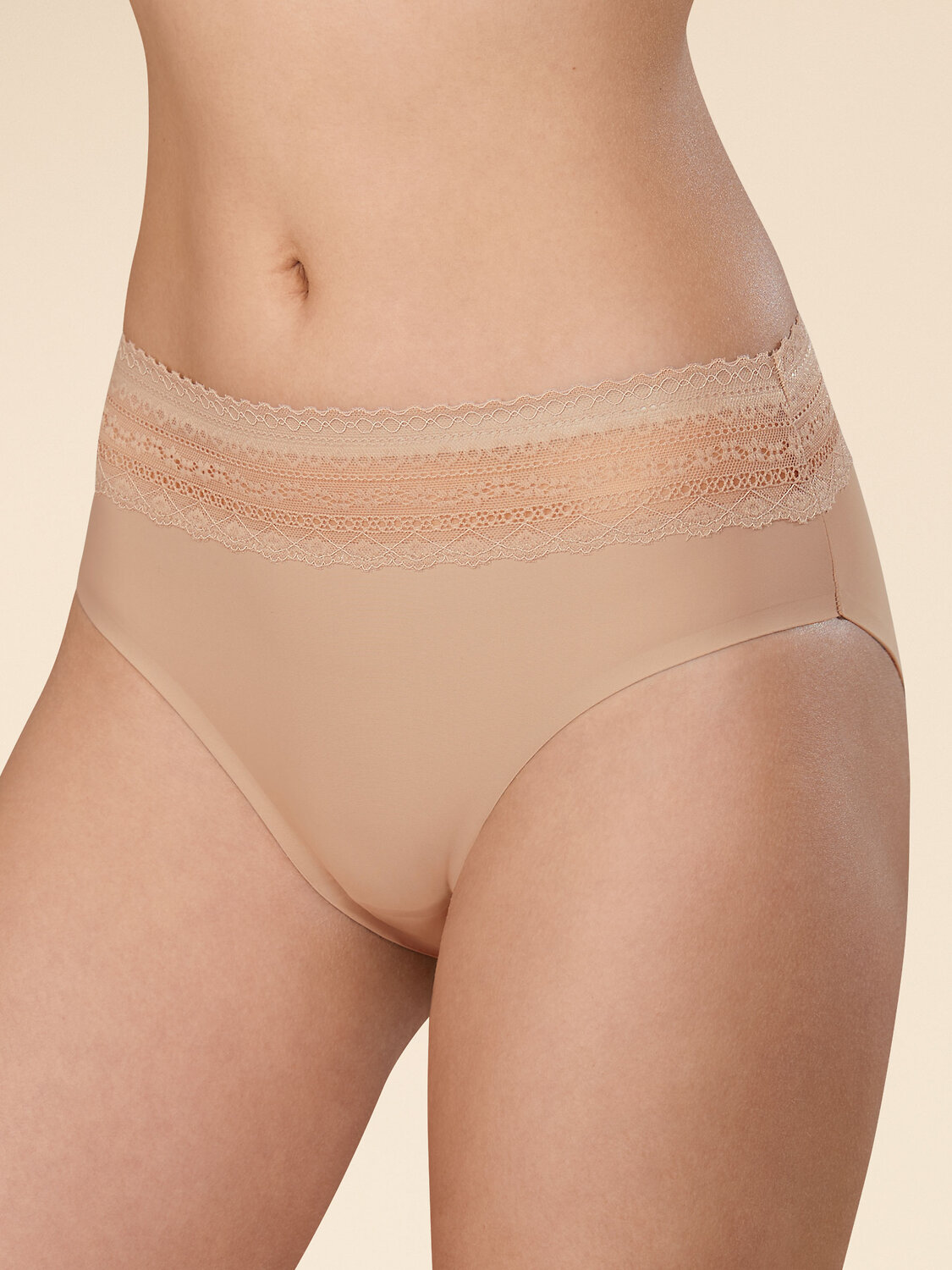 Женские трусы-слипы с высокой посадкой. Изготовлены по бесшовной технологии с минимум швов. Кромки по ноге и по талии подогнуты и приклеены, хлопковая приклеенная ластовица. Нежное геометричное кружево по линии талии высотой 5 см – не передавливает тело и не натирает кожу. Модель оценят те, кто ищет незаметное и невесомое белье на каждый день или особого случая. Модель представлена в универсальных цветах – черный, темно-синий, темно-серый, кремовый, молочный, охра, хаки и шоколадный. Выбирайте нужный размер по таблице размеров на фото. Цвет товара на экране вашего устройства может отличаться от цвета изделия вживую. Товар возврату и обмену не подлежит. Песочный