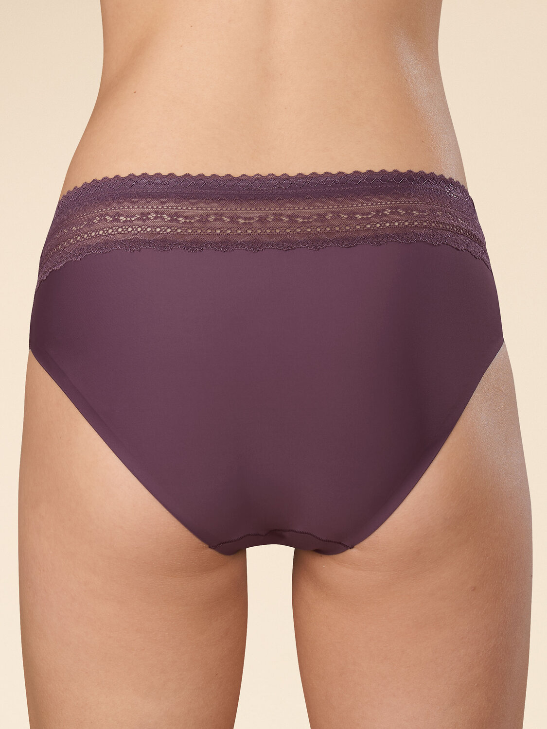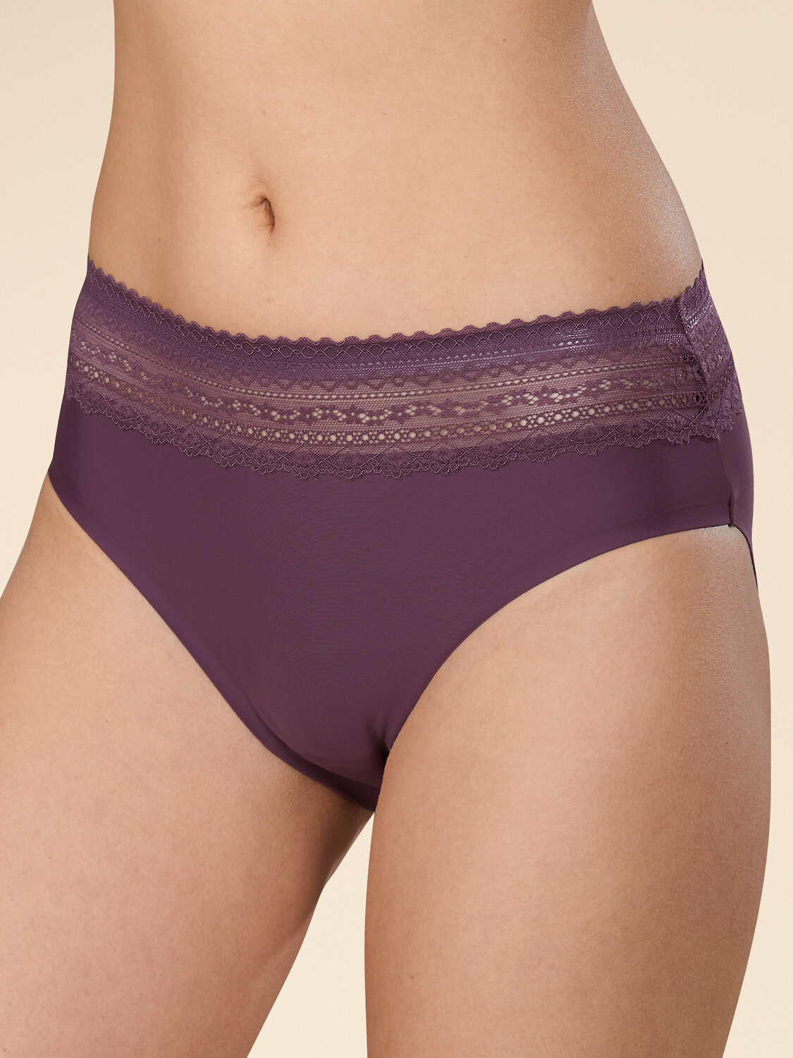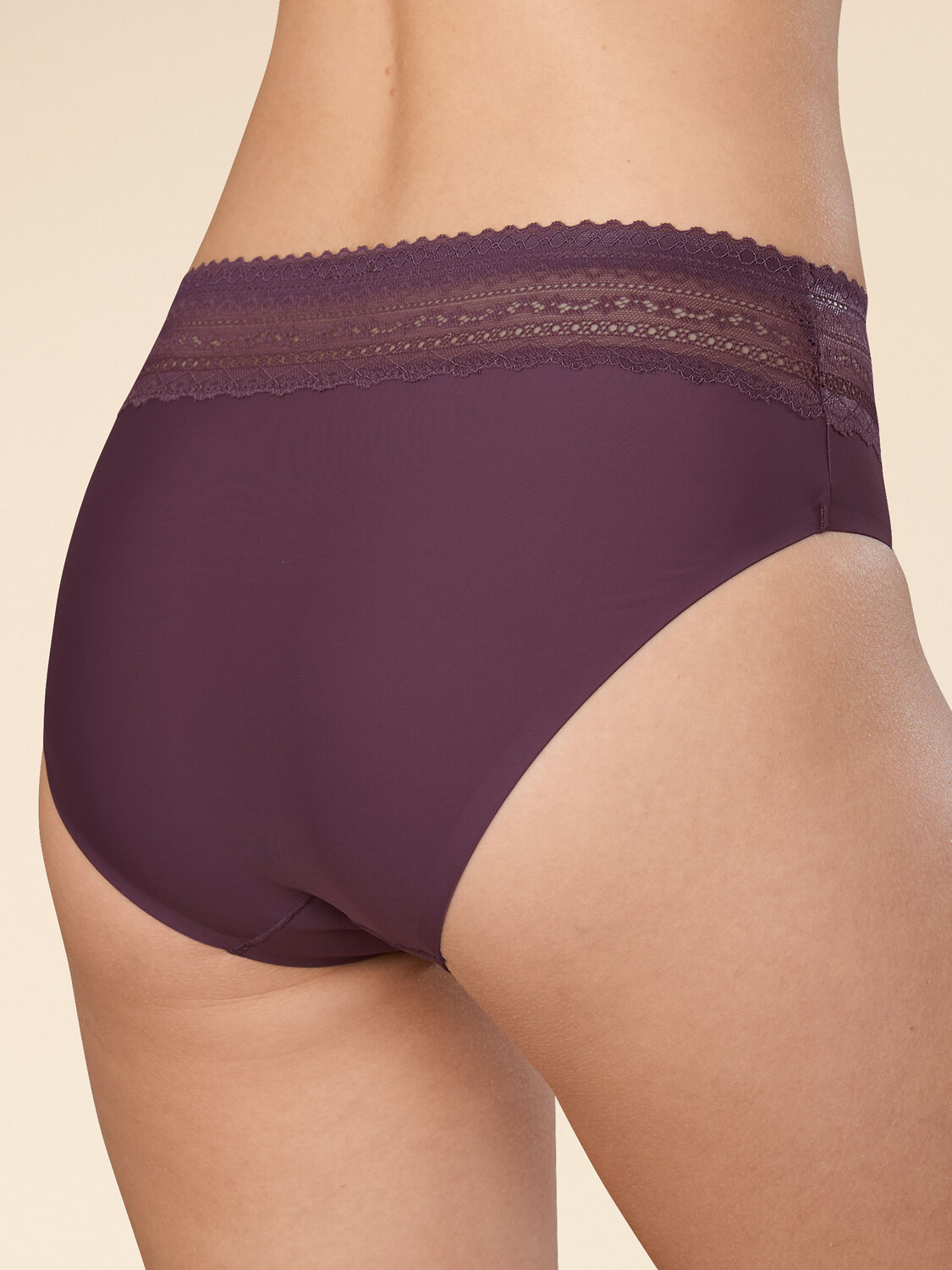 Женские трусы-слипы с высокой посадкой. Изготовлены по бесшовной технологии с минимум швов. Кромки по ноге и по талии подогнуты и приклеены, хлопковая приклеенная ластовица. Нежное геометричное кружево по линии талии высотой 5 см – не передавливает тело и не натирает кожу. Модель оценят те, кто ищет незаметное и невесомое белье на каждый день или особого случая. Модель представлена в универсальных цветах – черный, темно-синий, темно-серый, кремовый, молочный, охра, хаки и шоколадный. Выбирайте нужный размер по таблице размеров на фото. Цвет товара на экране вашего устройства может отличаться от цвета изделия вживую. Товар возврату и обмену не подлежит. Черника