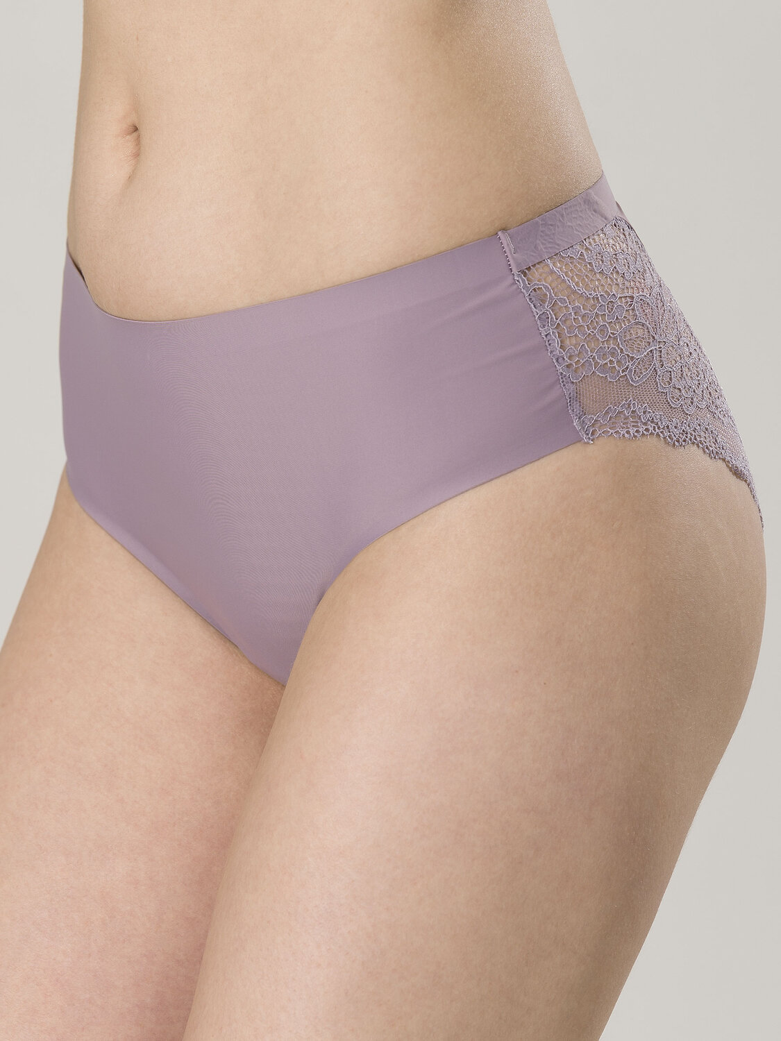 Женские трусы-слипы с высокой посадкой. Изготовлены по бесшовной технологии с минимум швов. Кромки по ноге и по талии подогнуты и приклеены, хлопковая приклеенная ластовица. Нежное цветочное кружево придает модели утонченный вид. Продуманный крой трусов создает изящный силуэт. Модель оценят те, кто ищет незаметное и невесомое белье на каждый день или особого случая. Сиреневый